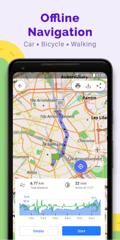 - 주요 특징: 전 세계 지도 무료 다운로드 / 완전 오프라인 사용